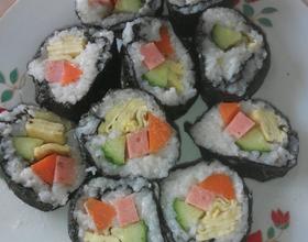 如果米饭铺太满切的时候容易切坏~切的时候要小心~也可以随意加入你喜欢的食物~