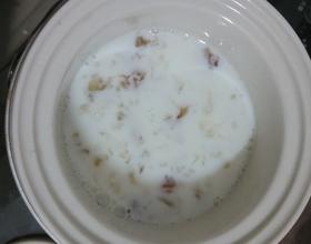 桃胶小许,牛奶250毫升,冰糖按个人喜好,水小量