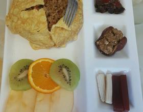 最后煎个鸡蛋饼放入碗里,把炒好的咖喱饭放进去,就哦了