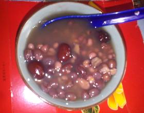 早上将泡过水的红豆薏米加红枣放入电饭锅煮一个小时