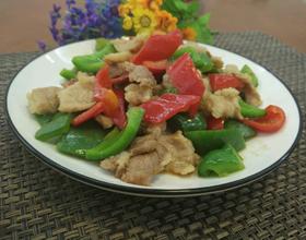 青红椒三成熟时就加入肉片一起爆炒 加入鸡精 两分钟后就可以了