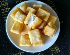 油温6成加热,放入年糕,中小火慢炸,炸至金黄色捞出。