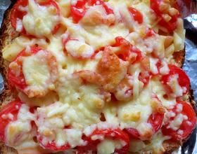 铺一层马苏里拉奶酪,然后把圣女果切成块撒点白糖在上面腌两分钟,然后铺上!