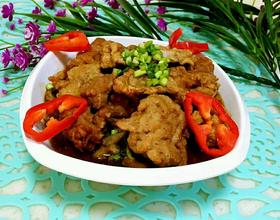 在菜的最上面依次铺上酥肉大葱,青辣椒,入锅里蒸半个小时。