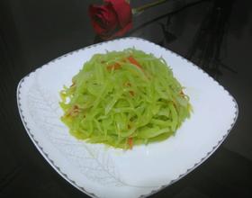 莴苣去皮洗净切丝,红椒洗净切丝,胡萝卜洗净切丝