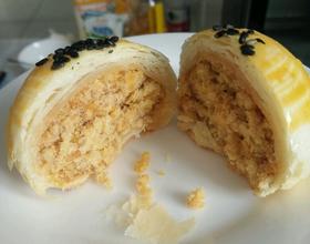 啰嗦啰嗦:1、咸蛋黄蒸的时候撒高度白酒去腥!蒸的时候别忘了盖保鲜膜,不然水蒸气倒流全是水!2、全程的每个步骤的面团都要盖保鲜膜静置15分钟左右,不然面团容易干,不好包!3、每个人的烤箱不一样,温度可自行调节!中粉,也就是普通面粉,我反倒比较少用普通面粉,就用了一半一半的高粉和低粉代替!谁让我经常捣鼓面包蛋糕的呢!最后,好像忘了说肉松馅,每个20克即可哈!