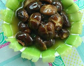 - 5. 锅里放油烧热,放入葱姜蒜,放入酱油,倒入香菇,放入一些水。放入盐,最后放入油菜,放入水淀粉搅匀就可以了。