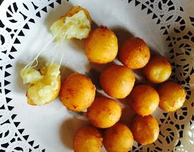 薯球下锅前可以在团一团 这样形状会比较圆!锅里一次不要放太多 以免粘连😁