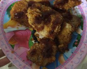 鸡蛋打散,里脊沾上蛋液,再裹上面包屑