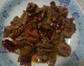 烧油锅放入奄好的猪腰子炒,再加入步骤四一起炒