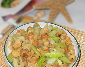 倒入螺肉炒匀,放蚝油,糖炒约3分钟。