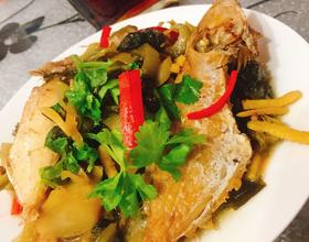 锅下油,油热后把沥干水分的敌仔鱼放入煎成两面金黄色(如果喜欢吃原味的可以省略这煎的步骤,直接和酸菜姜丝一起焖煮)