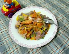 - 3. 加入虾,炒到虾的皮肉相离,也可以不加,加入虾是因为我家宝宝喜欢吃,只有菜,他不喜欢吃