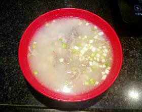 倒入刚才的羊肉汤,我又加了几个虾仁,再次煮沸就可以出锅了。