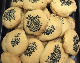 把面团分成大小同等的小团,沾上芝麻拍成饼状,放入托盘,烤箱180度预热,然后继续180度20分钟后出炉!