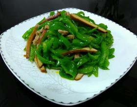青椒切丝,香干切丝,肉丝用料酒和生抽腌制