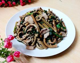 这是自己上山摘的蕨菜、蕨菜要冷水下锅煮沸腾后捞起、用冷水浸泡一两天、中间换几次水、浸泡掉黏质和土腥味、才可食用。蕨菜属寒性、寒性体质的人吃蕨菜可像我一样、放韭菜一起炒中和一下、味道也是棒棒哒。