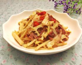 1.雷笋剥好后,先切几段,然后再竖着切丝,一定是切薄,这样容易熟,也容易入味2.辣椒的多少和品质根据个人喜好选择3.炒笋,一定要多放一点油,这样口感更好