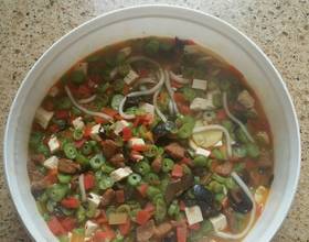 加入鸡汤熬制,吃素的话就好了。喜欢肉肉的放入提前炒好的肉丁,我放的肉臊子。