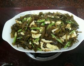 - 7. 锅里再放入适量的油,把海带丝放入锅中,翻炒一会,然后加入适量的水,中火焖煮几分钟