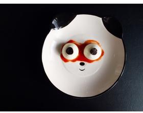在盘子中间抹一丢丢番茄酱,把鸡蛋摆进去。