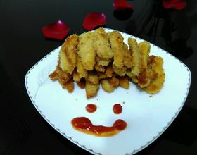 - 13. 平底锅里油烧热,放入鸡柳,小火炸