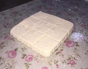 - 12. 放上豆腐盒上半部分,压上重物,等30~60分钟,(当无水滴下,豆腐就压好了)想吃嫩的少压一会儿,热吃老的多压一会,