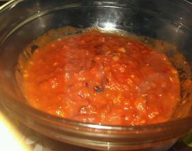 把西红柿炒出汁后,翻茄酱搅拌均匀,再倒入盐,糖转大火煮10来分钟后,出锅。我没放批萨草,味道也很好滴。