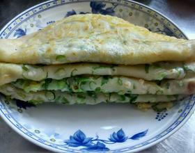 表层面糊变色时,手握平底锅让煎饼转几圈。