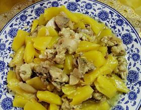 最后放菠萝一起炒,盖上锅盖焖三分钟。