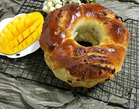 1、最后可盖上锡纸防止表面上色太深。2、烤箱温度和时间请根据自家烤箱脾气设置。3、我这是看错温度了,颜色过深,不过不影响面包的口感。晕晕的把180度看成160度了。