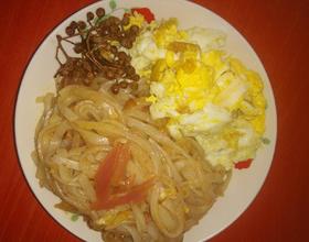 花椒,不要弄散,拌好厚,挑出来,因为是泡菜做的,所以不用醋哦,荷包蛋最好,我技术不行,只能这样