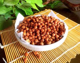 不时地翻动黄豆,使其受热上色均匀,黄豆粒会一点点变小,颜色慢慢呈金黄;