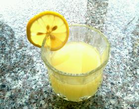 柠檬放在榨汁机里榨成汁,加150克温开水,加3小勺蜂蜜。