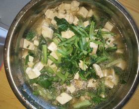 炒菜加水放豆腐,开锅后放一点盐开个几秒出国就行