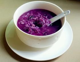紫薯跟米一起下锅,加入适量水,大火煮开后小火煮到米开花,加入适量冰糖即可食用。