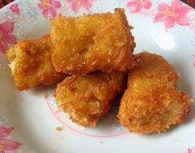 炸的时候油可以多放些,香蕉不容易粘底,面包糠可以多裹一些炸出来的即香脆又好看!