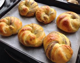 送入预热好180度的烤箱,烤15分钟左右,到面包表面变为金黄色即可出炉。
