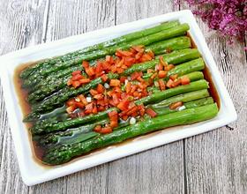 1.芦笋长度切的差不多2.在锅中加入盐和油,让芦笋更入味更松脆3.芦笋煮的时间不要太长,我是拿了一根粗的切底部尝了一下4.最后淋上热油比较美味