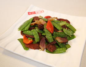 - 8. 倒入荷兰豆炒至断生