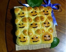 - 7. 压扁包入馅料,收口滚圆,放进盆里进行二次发酵,剩下的一个面团搓18个小球(小一点精致一点,我的太大),滚圆当小熊耳朵