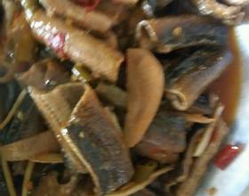 将鳝鱼用姜蒜豆瓣,泡菜,泡椒拌均匀,腌制五分钟