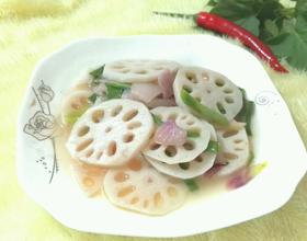 藕片先煮好再浸清水凉了再炒,炒出来的颜色白白净净