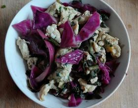锅里再次倒入油,把紫甘蓝倒进锅内翻炒片刻,放盐,倒入少许醋
