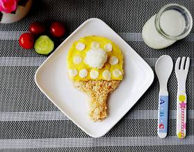 把蛋黄饼皮做出球拍,蛋清皮剪成一个个小小的圆形,按照图片放上去。就成功了