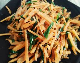 土豆丝炒3-5分钟,放入韭菜断继续翻炒1分钟