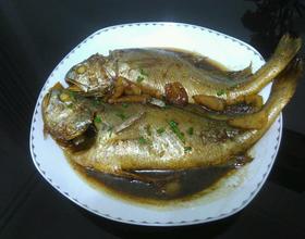 黄鱼洗净,姜去皮洗净切片,蒜头去皮洗净切片,葱洗净一半打结,一半切末