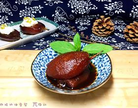 梨子最好用红酒没过,熬软了梨子就要捞出了,太软了没有型而且口感不好。最后把红酒收汁至浓稠,整个过程保持小火慢炖。装修用的淡奶油和梨子一起吃非常棒。