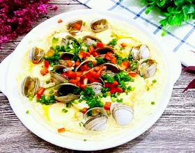 上锅蒸,蒸到蛋液凝固,蛤蜊张开就好了