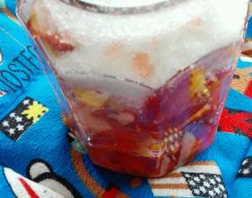 将搅拌均匀的草莓柠檬装入杯中上面洒满白糖,密闭放入冰箱冷藏3个小时即可!